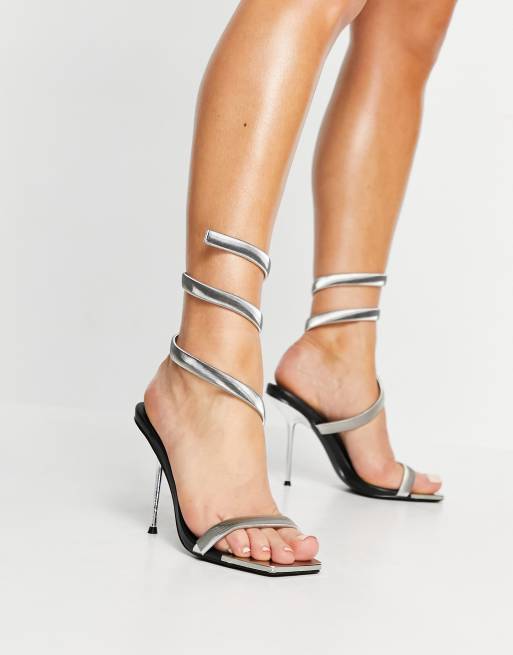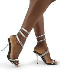 Silver Heels That Wrap Around Leg